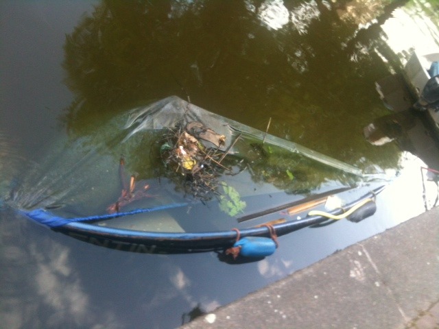 berging van gezonken bootje (ca 5m lang) in Amsterdam