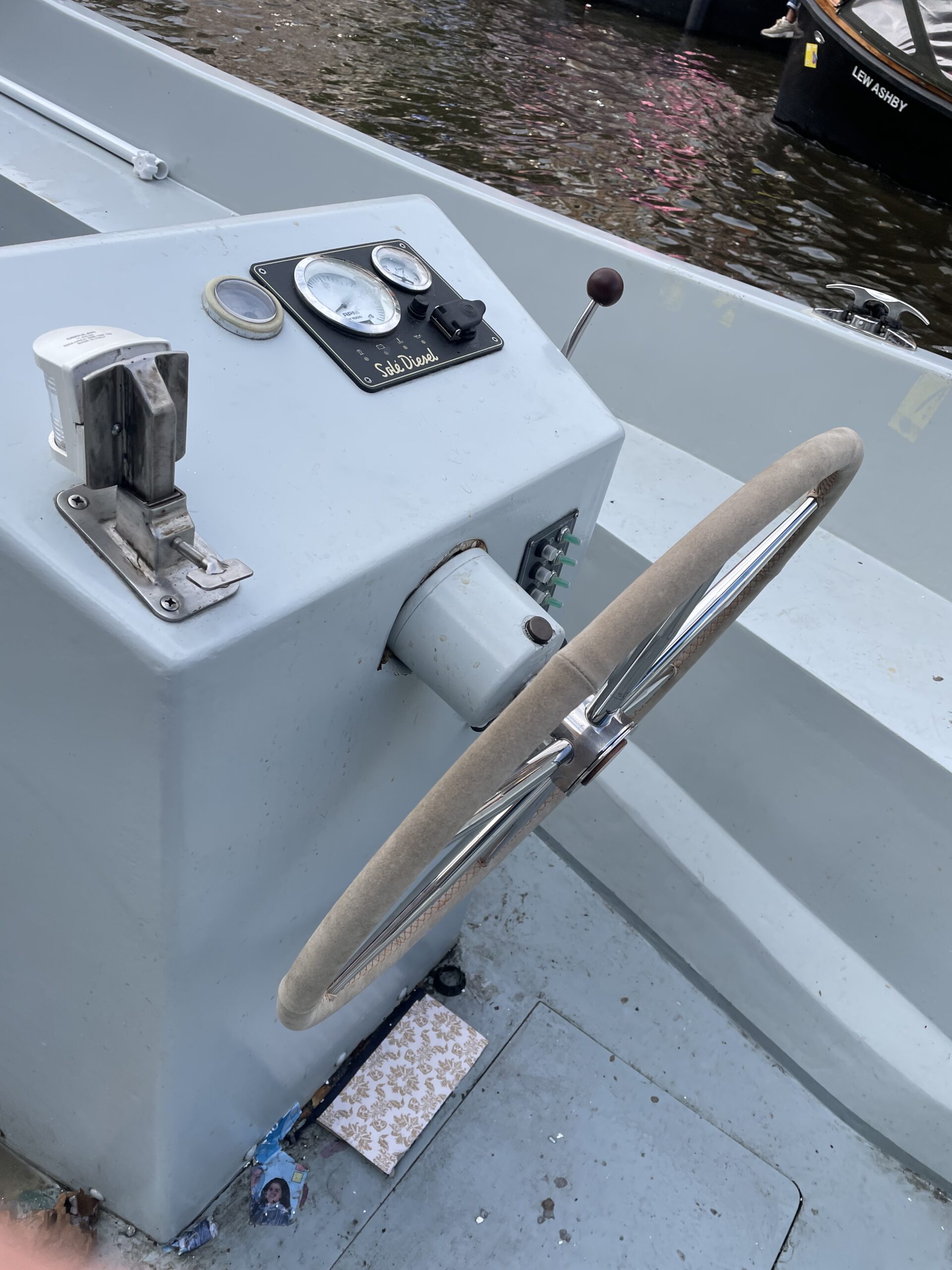 Het stuurwiel van de boot is afgebroken van het stuurhuis. Opbouw stuurhuis noodzakelijk.