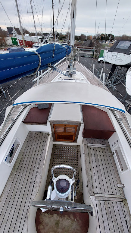Aan bakboord is het 1 lange vaste bank. Achteraan in de kuip , waar de stuurman zit achter het stuur, is er ook een centraal vast deel.