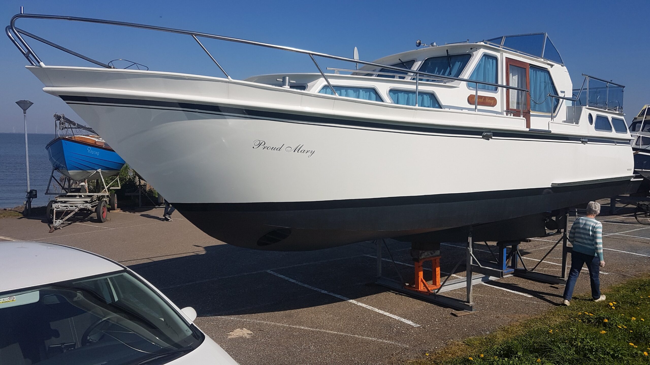 Boot ligt momenteel nog te water maar kan overgevaren worden naar werf of mogelijkheid tot werkzaamheden op locatie in Andijk aan de wal.