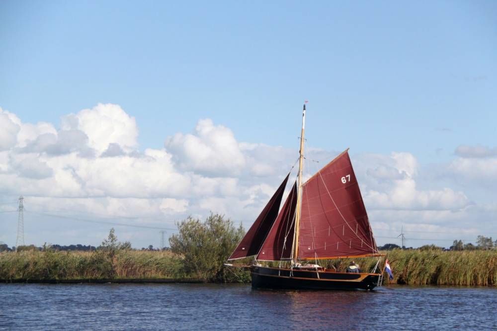 Grootzeil. 13,6 m2. Gaffelzeil 2 reven Reefogen achter extra versterkt, zeilnr