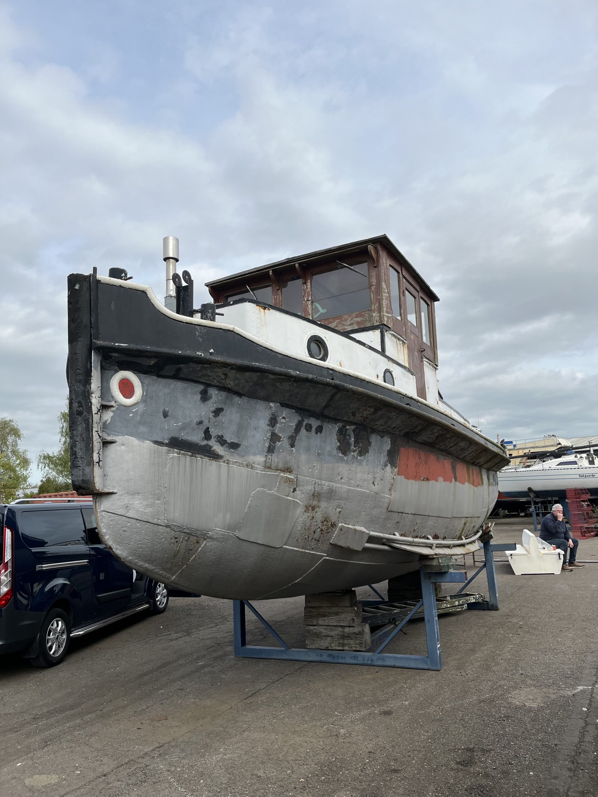 De sleepboot welke nu nog op de wal ligt zat ttv slepen in het water liggen