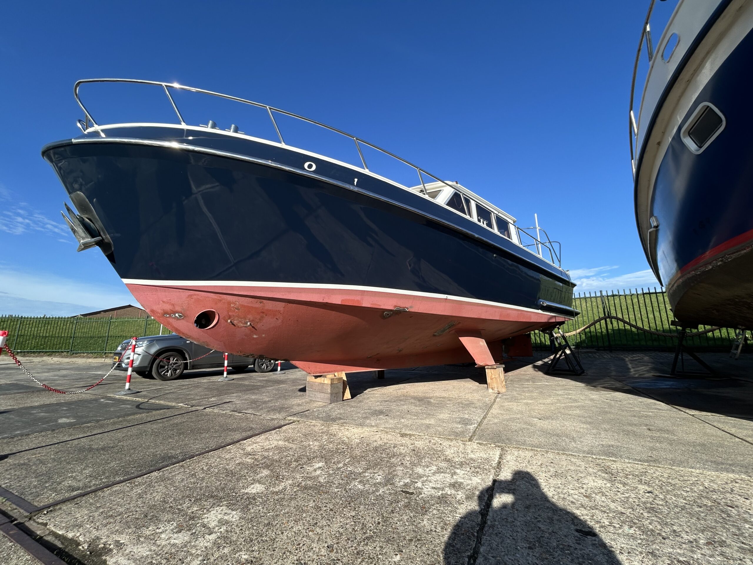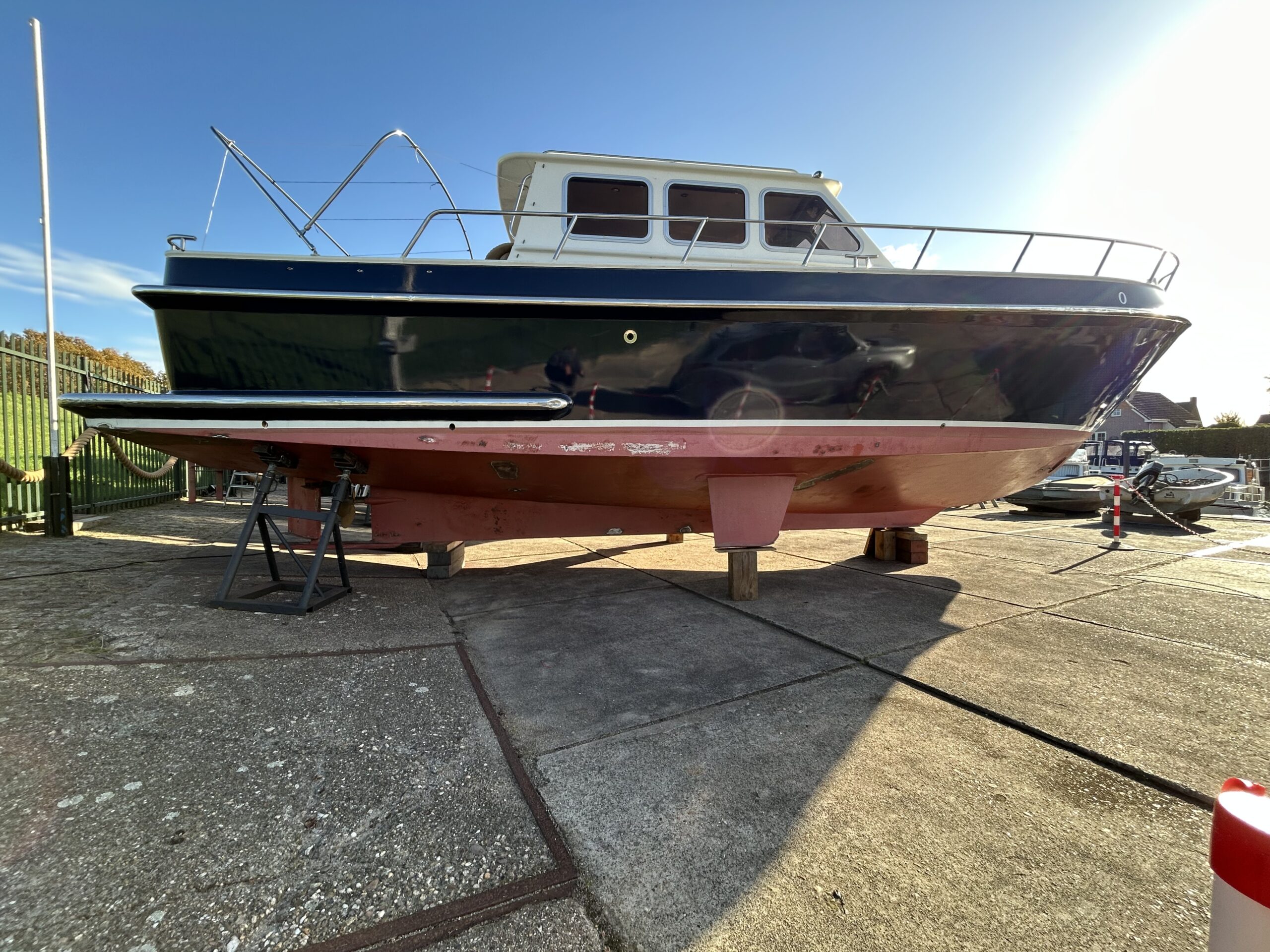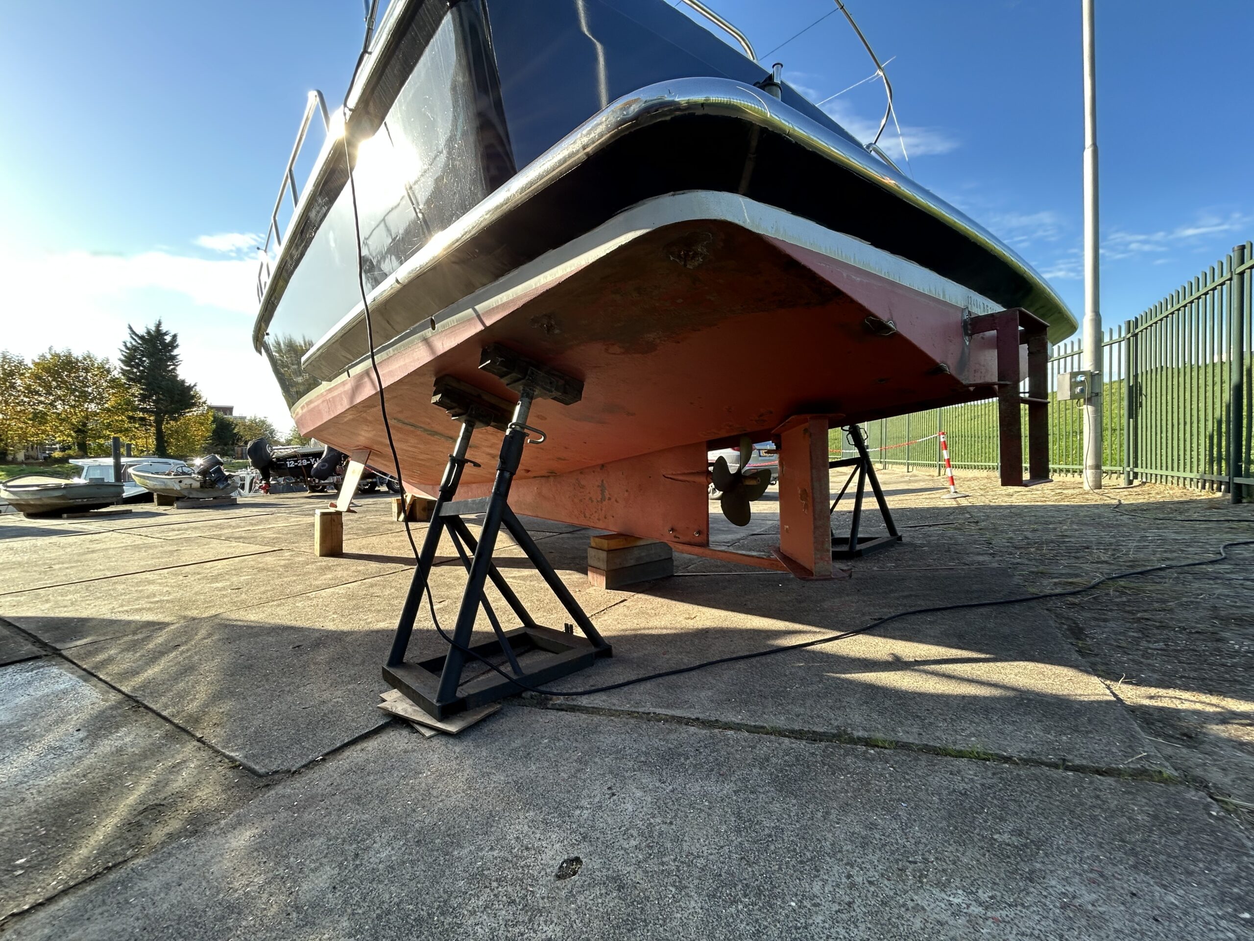 Het stralen van het onderwaterschip en in de 2 comp epoxy zetten en Antifouling