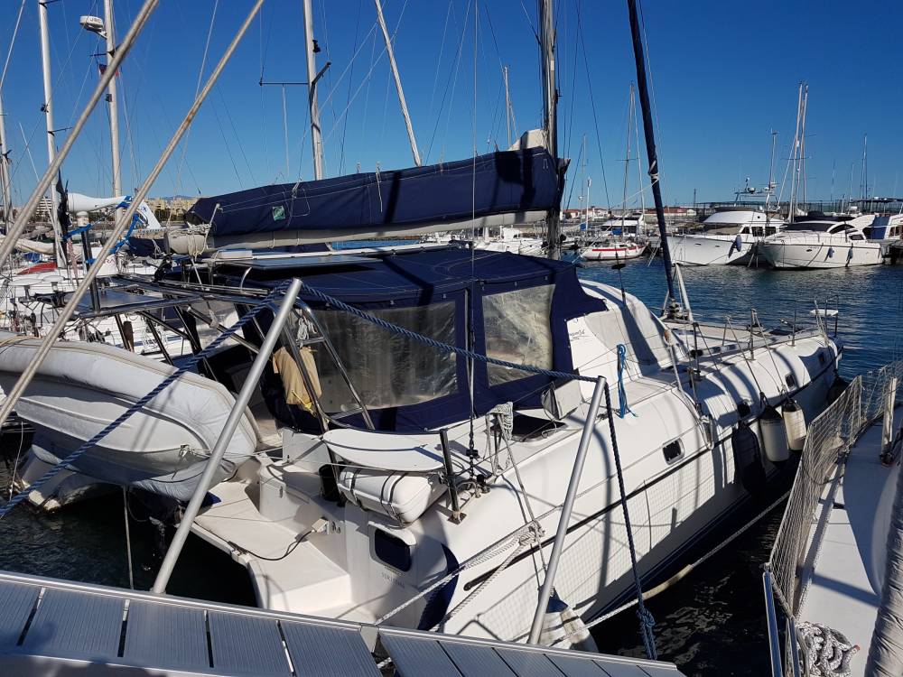Onze boot is stilaan toe aan een nieuwe dektent, lazybag en uv strip. Het is de catamaran gelegen te mpz ouddorp.